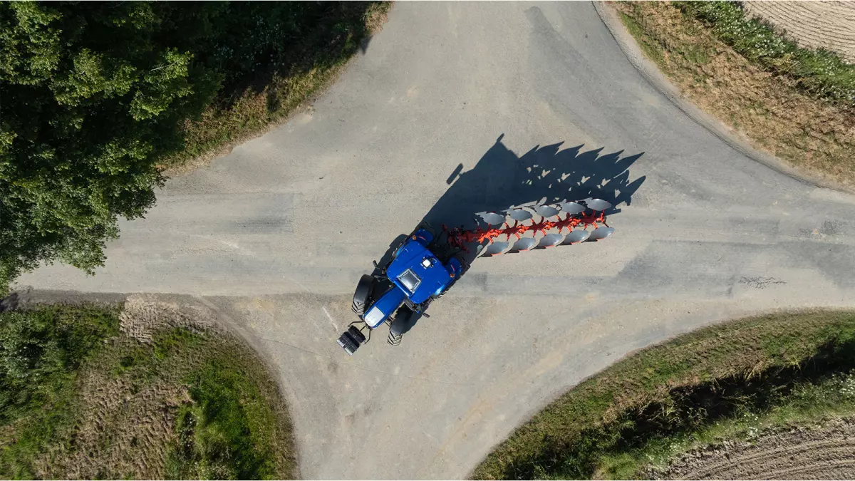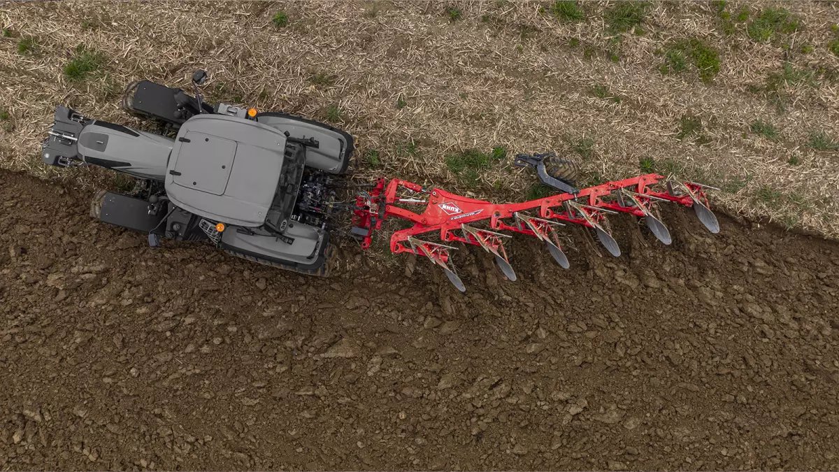 Der Pflugkopf mit starren Anbaugabeln ist das Ergebnis von 160 Jahren Know-how im Bereich der Pflugtechnik. Dank der starren Anbaugabeln lässt er sich schnell anbauen und ist einfach für alle Einstellarbeiten zugänglich. Der schwenkbare Pflugkopf GODRIVE ermöglicht in Verbindung mit dem hydraulisch verstellbaren Stützrad WORK AND ROLL sichere Fahrten mit bis zu 40 km/h und einem Lenkeinschlag von ±40°. Ein solcher Lenkeinschlag ist durchaus vergleichbar mit dem eines Aufsattelpflugs. Die Option EASYDRIVE ergänzt dieses System, indem sie den Übergang von der Arbeits- in die Transportposition ohne Werkzeug erleichtert, da der Oberlenker schnell ausgehängt wird. Diese Systeme sind komplementär und für maximale Flexibilität kombinierbar. Schließlich sorgt die OPTIDRIVE-Federung für ein sanftes und sicheres Fahren am Vorgewende. Das Abstellen des Pfluges in der Schmetterlingsposition reduziert den Platzbedarf und vereinfacht die Wartung.
