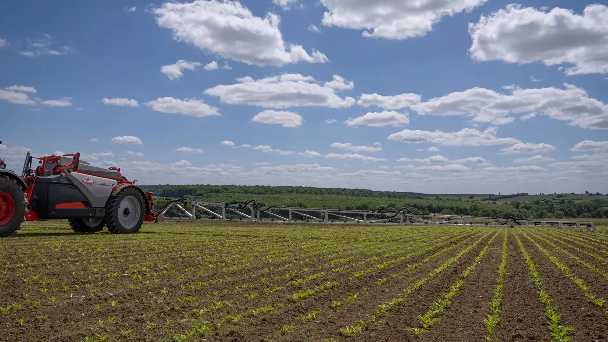 Dank des Gestängeführungssystems EAGLE kann die KARAN-Spritze mit einer Geschwindigkeit von 25 km/h arbeiten.