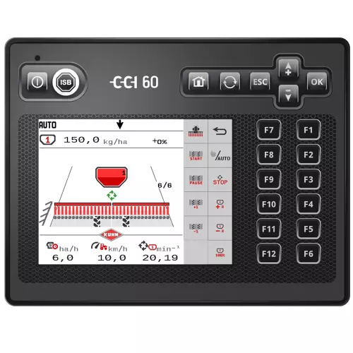 Die ISOBUS-Fähigkeit verschafft Ihnen mehr Flexibilität, denn Sie können wahlweise das Terminal CCI 800, CCI 1200 oder jedes andere, bereits auf dem Hof vorhandene ISOBUS-Terminal einsetzen. Bei Traktoren ohne ISOBUS kann die Saatüberwachung außerdem über das Terminal VT 30 von KUHN erfolgen. Neben der Saatüberwachung werden weitere Funktionen darüber kontrolliert: Überwachung der Gebläsedrehzahl und des Füllstands im Behälter, Fahrgassenschaltung, Hektarzähler, Abdrehprobenhilfe und Saatmengenverstellung. Bei den ISOBUS-Terminals CCI 800 und CCI 1200 kann zudem die Aussaat automatisch per GPS gesteuert werden. Dies gilt für die Funktionen Fahrgassenschaltung, die Saatmengenverstellung per Funktion TC-GEO oder die Zu- und Abschaltung des Dosierorgans am Feldende dank Funktion Section Control (TC-SC). Die Sämaschine MEGANT ist von der AEF für ISOBUS zertifiziert.