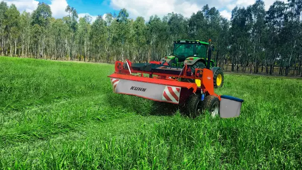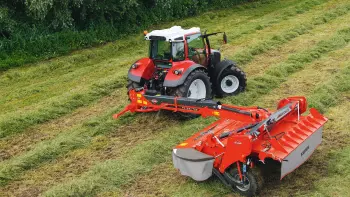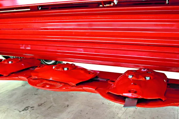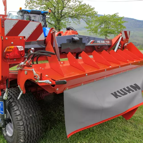 | | wahlweise 2 nebeneinander abgelegte Schwade oder 2 aufeinander gelegte Schwade (des vorangegangen Durchgangs oder des durch das Frontmähwerk abgelegten Schwades) | | |