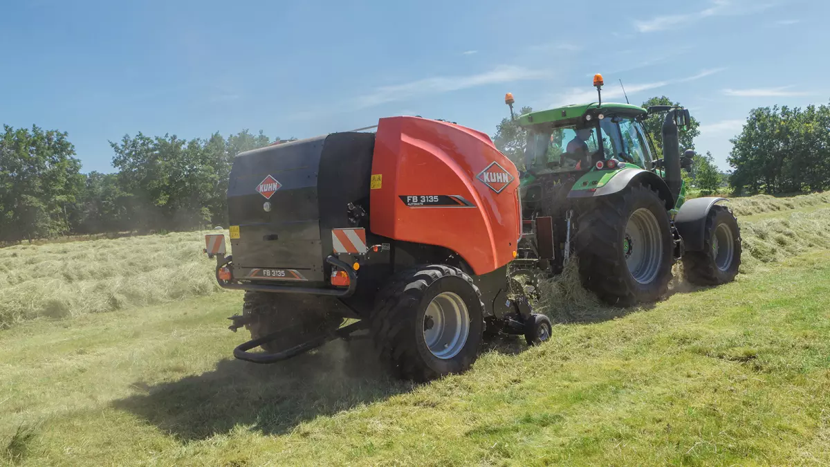 Die gesteuerte Pick-up der FB 3130/3135 ermöglicht höchste Einzugsleistung. Dank 2,30 m Arbeitsbreite kommt die Maschine mit jeder Schwadbreite zurecht und lässt Sie selbst unter härtesten Bedingungen nicht im Stich. Die geraden Pick-up Zinken nehmen das Pressgut zuverlässig vom Boden auf und verhindern, dass es sich in der Pick-up verfängt. Der geradlinige Gutfluss gewährleistet eine effiziente und sanfte Aufnahme. Im hinteren Bereich zieht die Kurvenbahn die Zinken gerade nach unten damit das Pressgut sicher übergeben werden kann. Die Pick-up kommt mit jedem Pressgut zurecht – egal ob langes Stroh, kurz geschnittene Herbstsilage oder Erntegut mit empfindlichen Blättern. Die Pick-up hat einen serienmäßigen Pendelweg und kann auf Wunsch mit nachlaufenden Tasträdern ausgestattet werden, sodass sie sich an wechselnde Bedingungen anpasst.