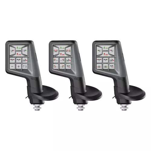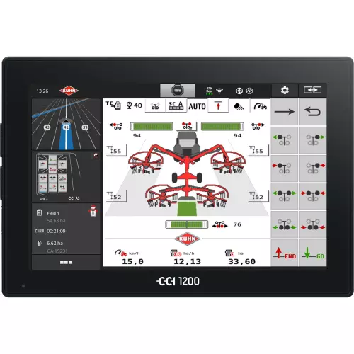 Weitere Vorteile sind der ruhige, leise Lauf und der geringe Verschleiß. Das Hydraulikaggregat der Vierkreiselschwader ist auf dem schwenkbaren Anbaubock des Maschinenrahmens positioniert. Dadurch sind auch enge Kurvenfahrten problemlos möglich. Zusätzlich kann die Zapfwellendrehzahl von der Kabine aus verändert werden, um sich optimal an Art und Menge des Erntegutes anzupassen.