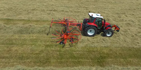 Gleichmäßige Schwade in der Mitte der beiden Kreisel, hohe Flächenleistung, saubere Recharbeit und flexible Einstellmöglichkeiten für alle Bedingungen sind die überzeugenden Argumente für die KUHN-Zweikreiselschwader GA 1031. Diese Modelle sind in 5 verschiedenen Arbeitsbreiten erhältlich.
