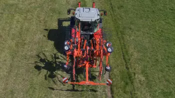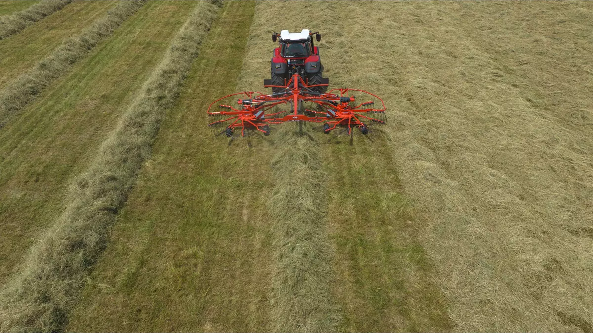 - Der starre Anbaubock und die vier Lenkräder führen jeden Kreisel stabil durch die Kurven. Dadurch wird die Grasnarbe geschont und das Einfahren in das Feld ist einfacher als mit einem angehängten Schwader.