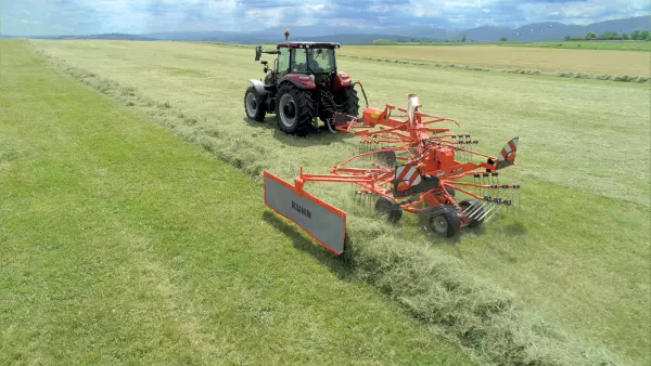 Für sehr dichte Futterbestände oder zum Legen von Nachtschwaden kann der GA 6002 auch zwei Schwade pro Überfahrt ablegen.
