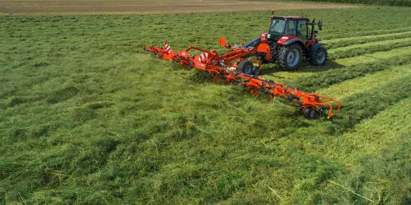 Für maximale Schlagkraft auch mit kleinen Traktoren. Entdecken Sie die angehängten Wender von KUHN: GF 7803 T, GF 7903 T, GF 8703 T & GF 10803 T. Mit Arbeitsbreiten von 7,8 m bis 10,20 m bieten diese Maschinen eine unübertroffene Leistung und Effizienz bei der Futteraufbereitung.