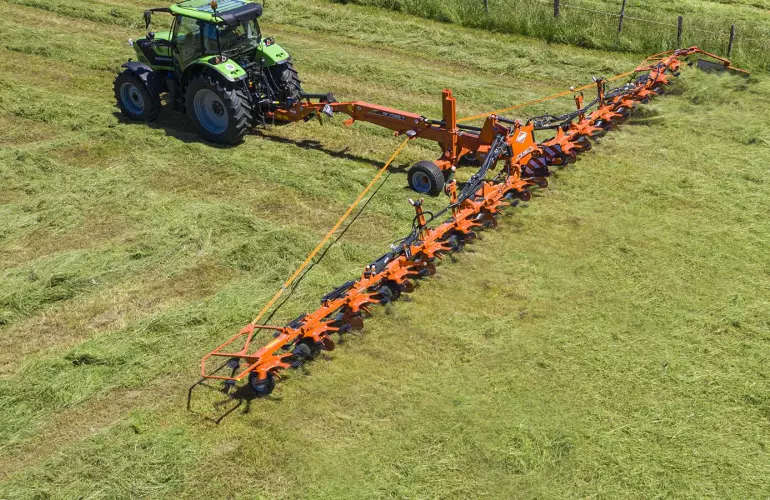 - Die kleinen Kreisel passen sich individuell Bodenkonturen an und wenden das Futter effizient, wodurch es rascher trocknen kann.