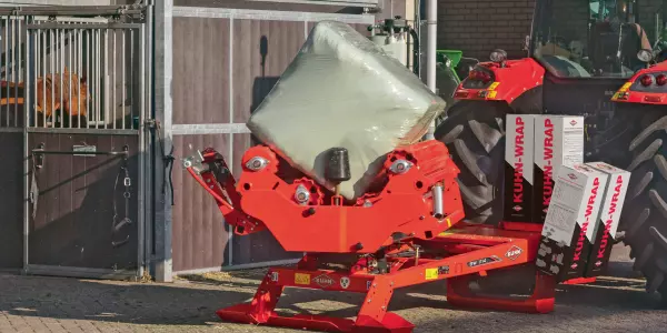 Der KUHN SW 1114 ist als Dreipunktgerät für ein Schnellkuppeldreieck geeignet und die ideale Maschine zum Wickeln und Stapeln von Ballen auf dem Feld oder am Lagerplatz. Beim Wickeln am Lagerplatz ist die Gefahr eines Folienschadens geringer.